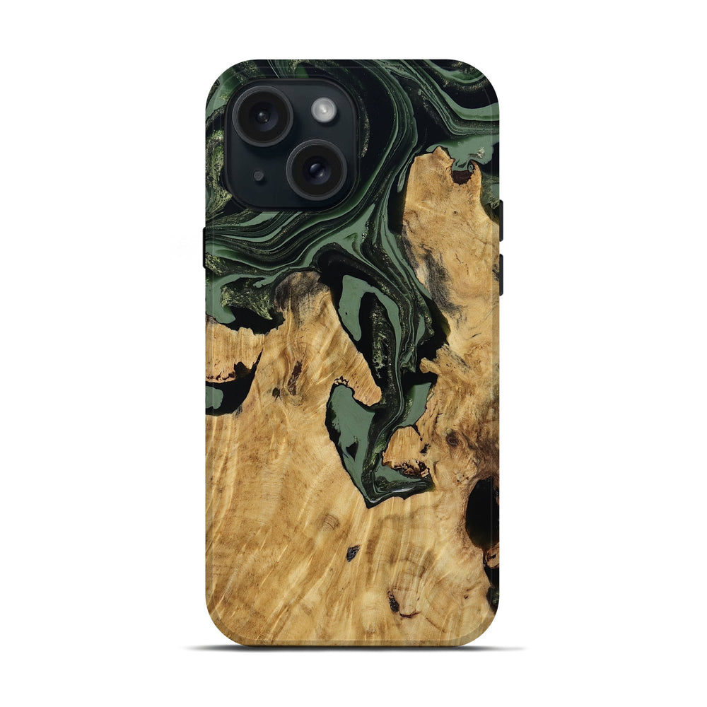 Our Live Edge cases are made from an amazing combination of stabilized wood burl and colored resin. Our stabilization process hardens the wood to protect against cracks and breaks. We do every step of the process at our shop in Northern Indiana. Perfectly fits the iPhone 15.