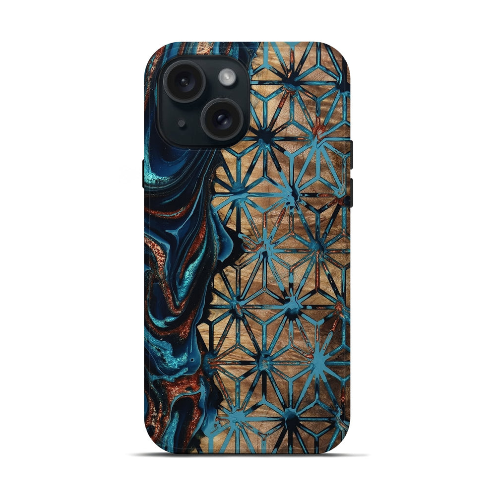 Our Live Edge cases are made from an amazing combination of stabilized wood burl and colored resin. Our stabilization process hardens the wood to protect against cracks and breaks. We do every step of the process at our shop in Northern Indiana. Perfectly fits the iPhone 15.