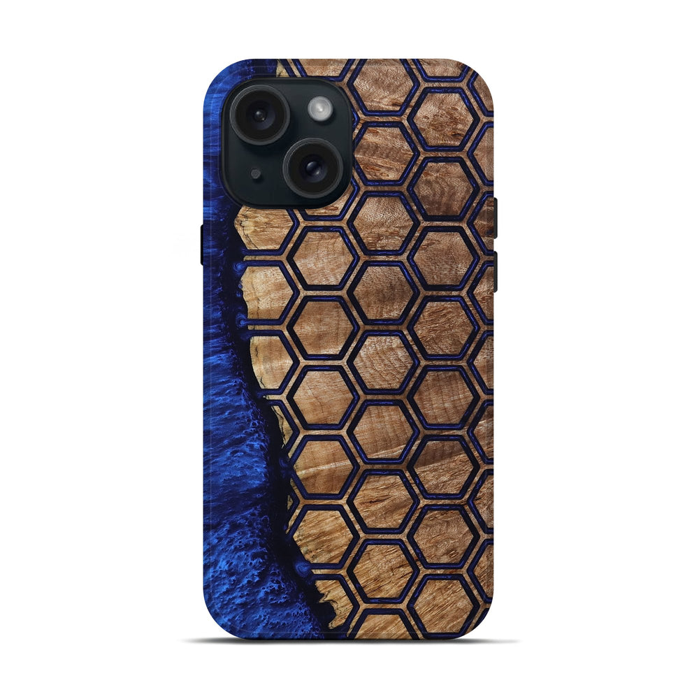 Our Live Edge cases are made from an amazing combination of stabilized wood burl and colored resin. Our stabilization process hardens the wood to protect against cracks and breaks. We do every step of the process at our shop in Northern Indiana. Perfectly fits the iPhone 15.