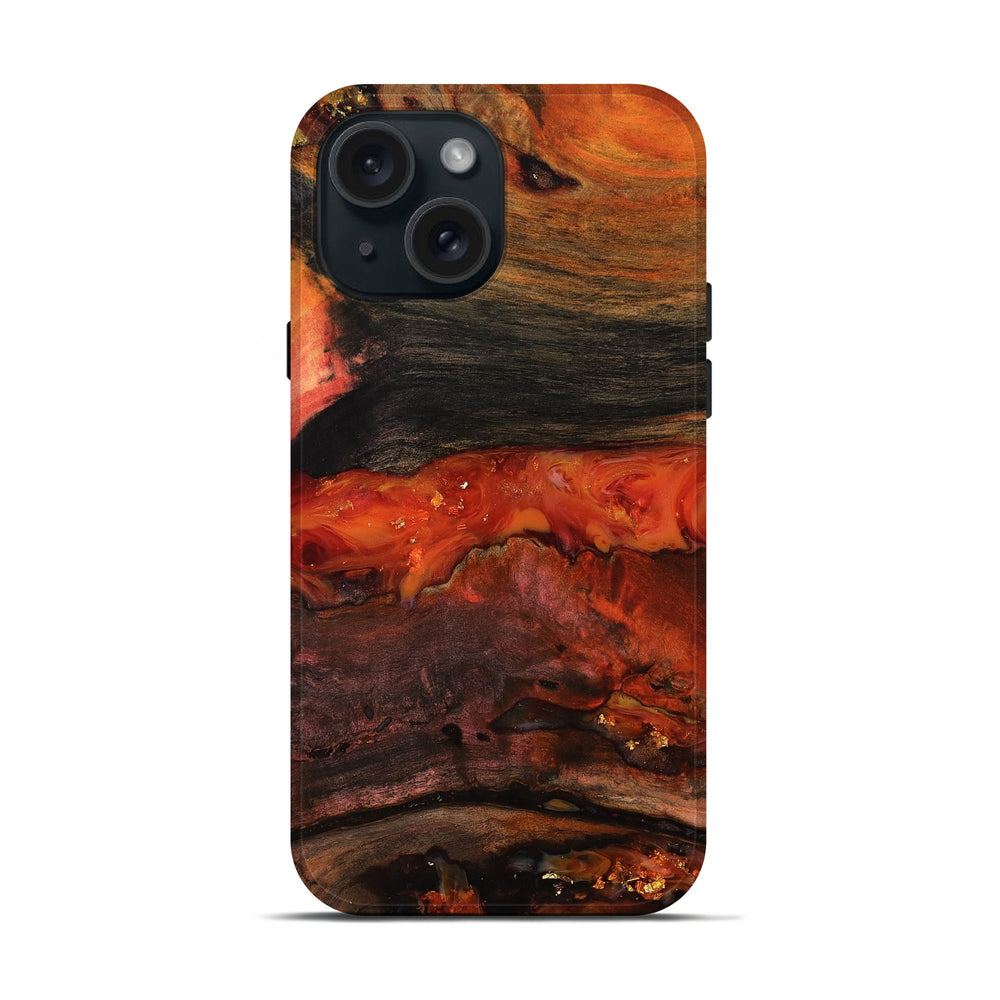 Our Live Edge cases are made from an amazing combination of stabilized wood burl and colored resin. Our stabilization process hardens the wood to protect against cracks and breaks. We do every step of the process at our shop in Northern Indiana. Perfectly fits the iPhone 15.