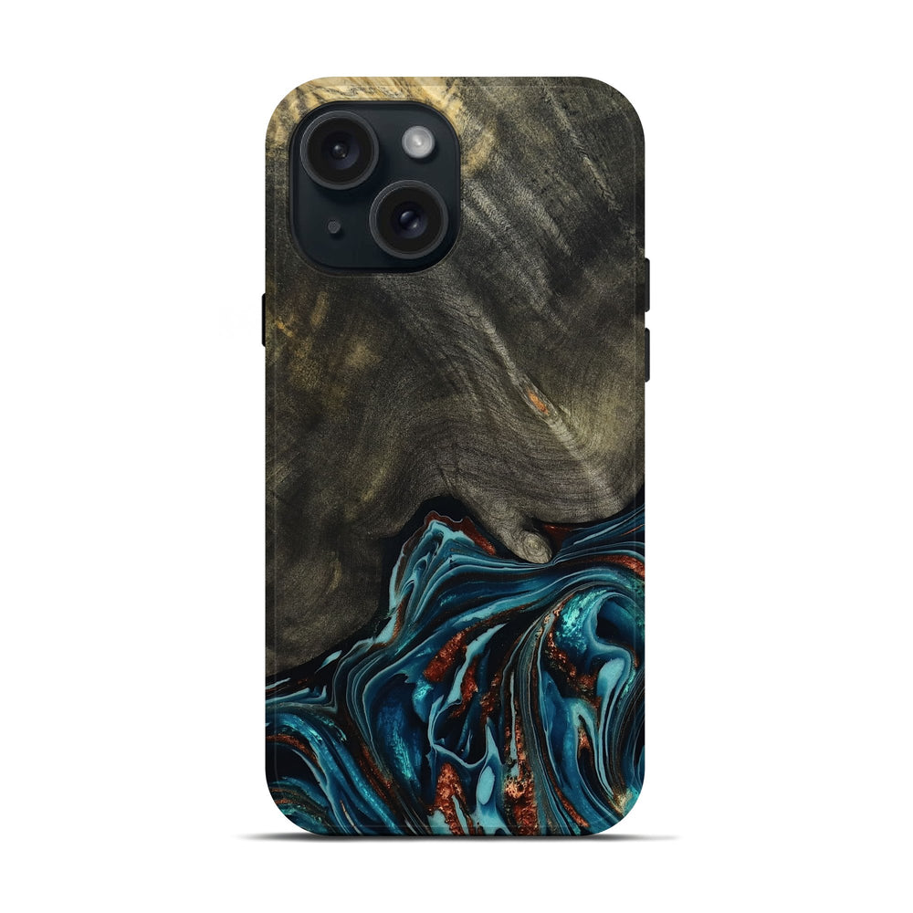 Our Live Edge cases are made from an amazing combination of stabilized wood burl and colored resin. Our stabilization process hardens the wood to protect against cracks and breaks. We do every step of the process at our shop in Northern Indiana. Perfectly fits the iPhone 15.