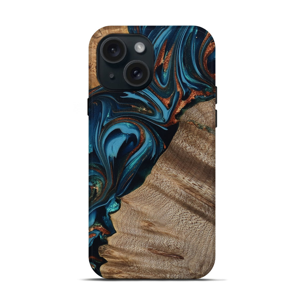 Our Live Edge cases are made from an amazing combination of stabilized wood burl and colored resin. Our stabilization process hardens the wood to protect against cracks and breaks. We do every step of the process at our shop in Northern Indiana. Perfectly fits the iPhone 15.