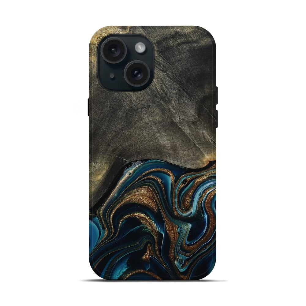 Our Live Edge cases are made from an amazing combination of stabilized wood burl and colored resin. Our stabilization process hardens the wood to protect against cracks and breaks. We do every step of the process at our shop in Northern Indiana. Perfectly fits the iPhone 15.