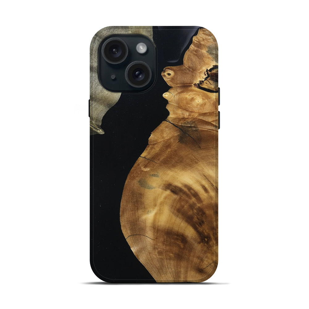 Our Live Edge cases are made from an amazing combination of stabilized wood burl and colored resin. Our stabilization process hardens the wood to protect against cracks and breaks. We do every step of the process at our shop in Northern Indiana. Perfectly fits the iPhone 15.