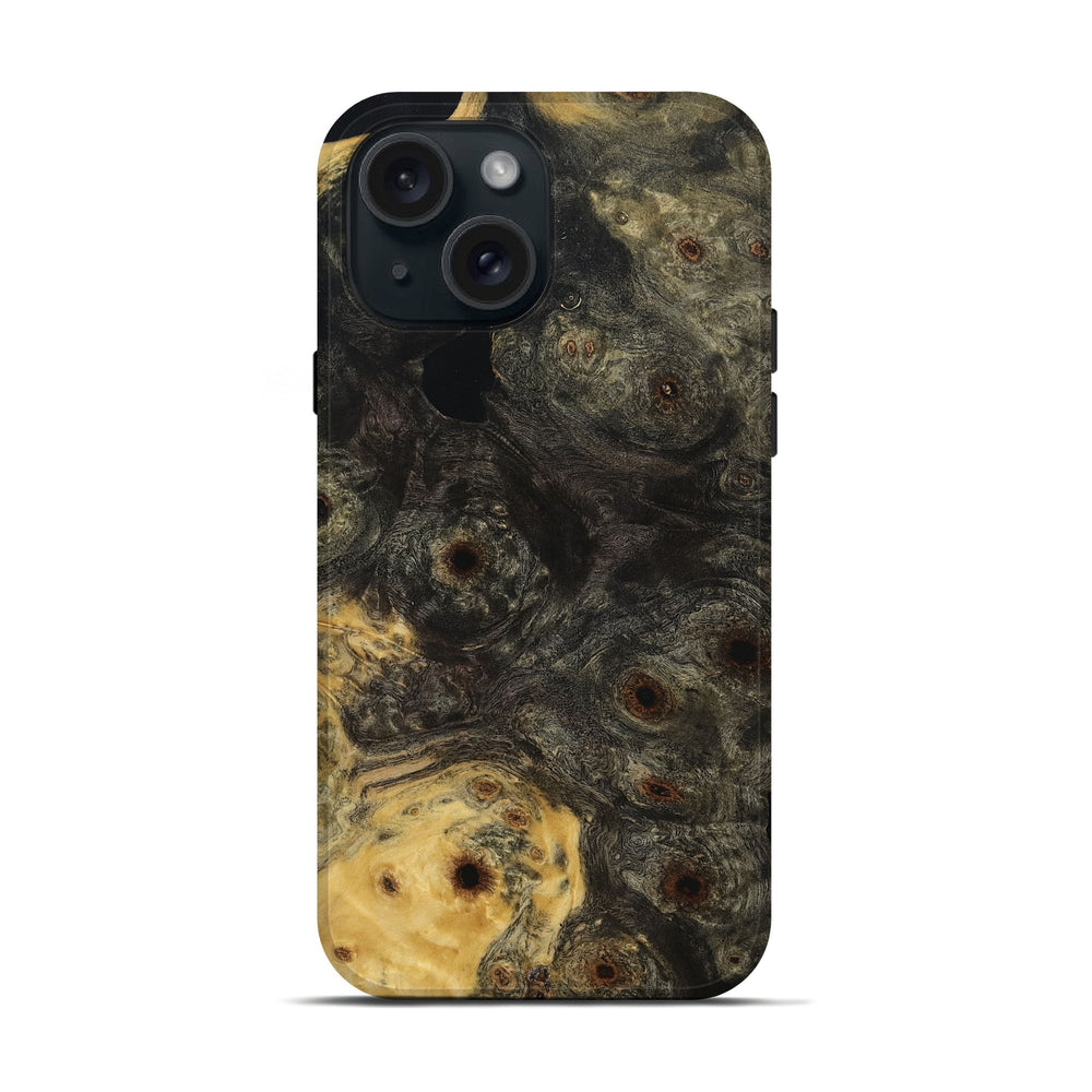 Our Live Edge cases are made from an amazing combination of stabilized wood burl and colored resin. Our stabilization process hardens the wood to protect against cracks and breaks. We do every step of the process at our shop in Northern Indiana. Perfectly fits the iPhone 15.