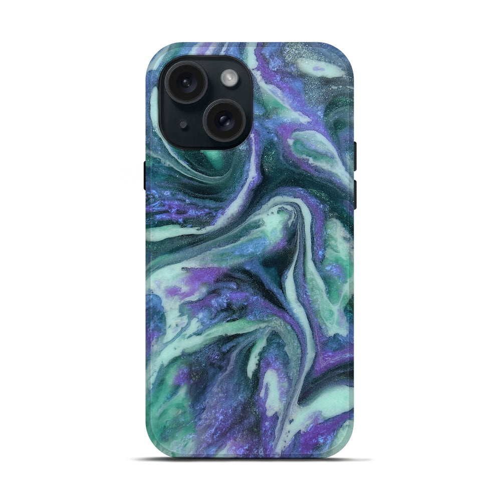 Our Live Edge cases are made from an amazing combination of stabilized wood burl and colored resin. Our stabilization process hardens the wood to protect against cracks and breaks. We do every step of the process at our shop in Northern Indiana. Perfectly fits the iPhone 15.