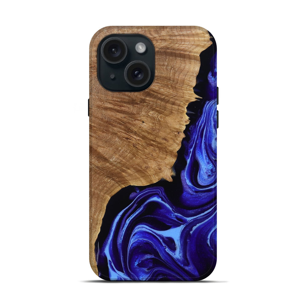 Our Live Edge cases are made from an amazing combination of stabilized wood burl and colored resin. Our stabilization process hardens the wood to protect against cracks and breaks. We do every step of the process at our shop in Northern Indiana. Perfectly fits the iPhone 15.