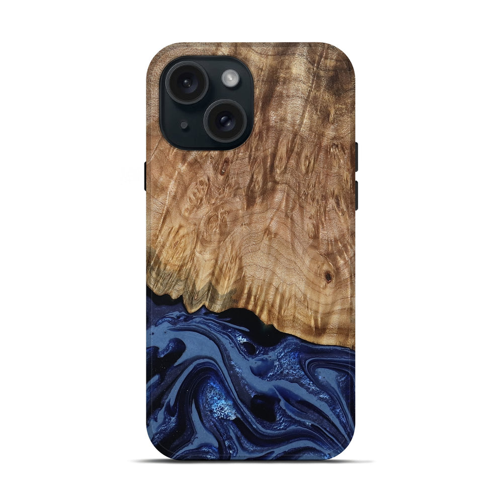 Our Live Edge cases are made from an amazing combination of stabilized wood burl and colored resin. Our stabilization process hardens the wood to protect against cracks and breaks. We do every step of the process at our shop in Northern Indiana. Perfectly fits the iPhone 15.