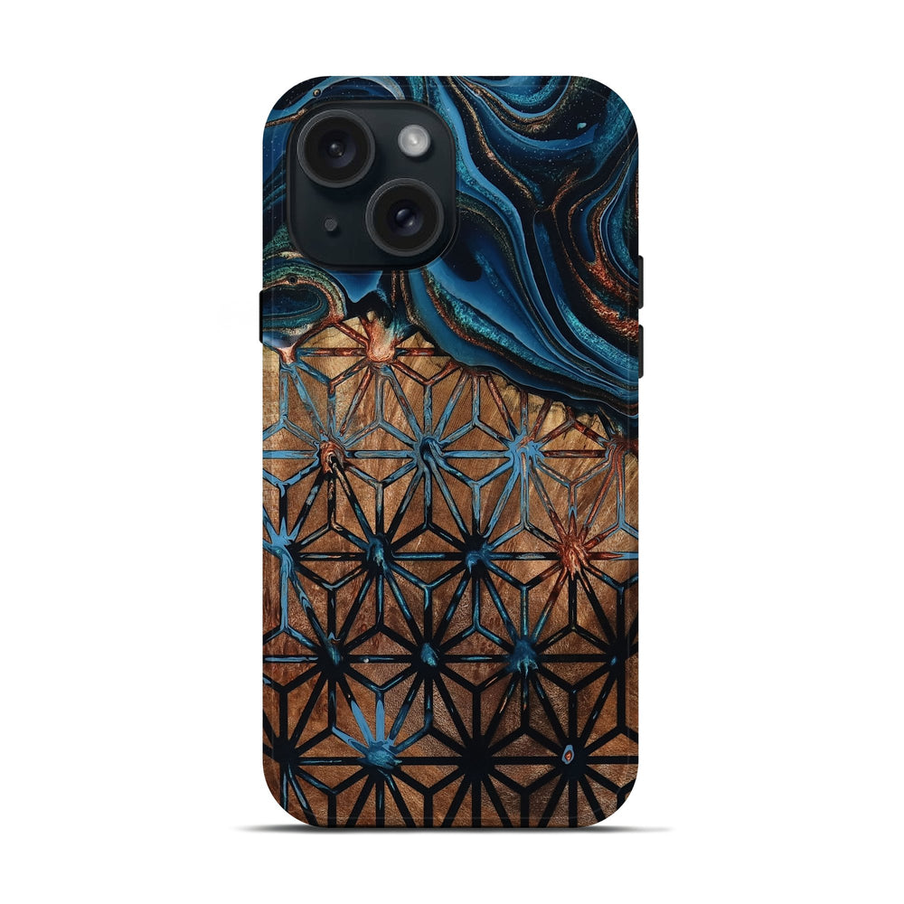 Our Live Edge cases are made from an amazing combination of stabilized wood burl and colored resin. Our stabilization process hardens the wood to protect against cracks and breaks. We do every step of the process at our shop in Northern Indiana. Perfectly fits the iPhone 15.