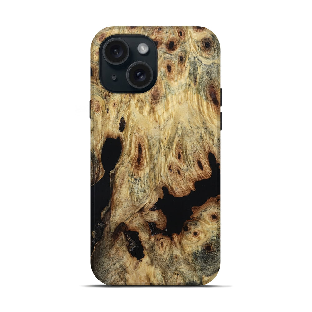 Our Live Edge cases are made from an amazing combination of stabilized wood burl and colored resin. Our stabilization process hardens the wood to protect against cracks and breaks. We do every step of the process at our shop in Northern Indiana. Perfectly fits the iPhone 15.