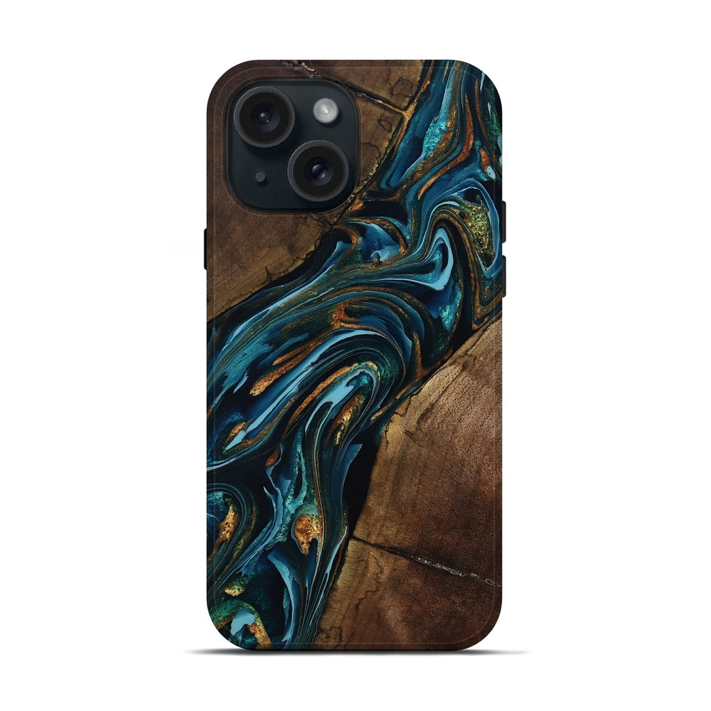 Our Live Edge cases are made from an amazing combination of stabilized wood burl and colored resin. Our stabilization process hardens the wood to protect against cracks and breaks. We do every step of the process at our shop in Northern Indiana. Perfectly fits the iPhone 15.
