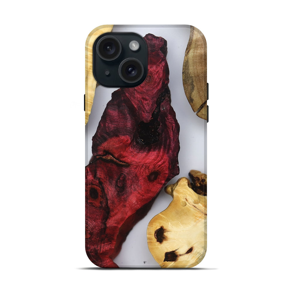Our Live Edge cases are made from an amazing combination of stabilized wood burl and colored resin. Our stabilization process hardens the wood to protect against cracks and breaks. We do every step of the process at our shop in Northern Indiana. Perfectly fits the iPhone 15.