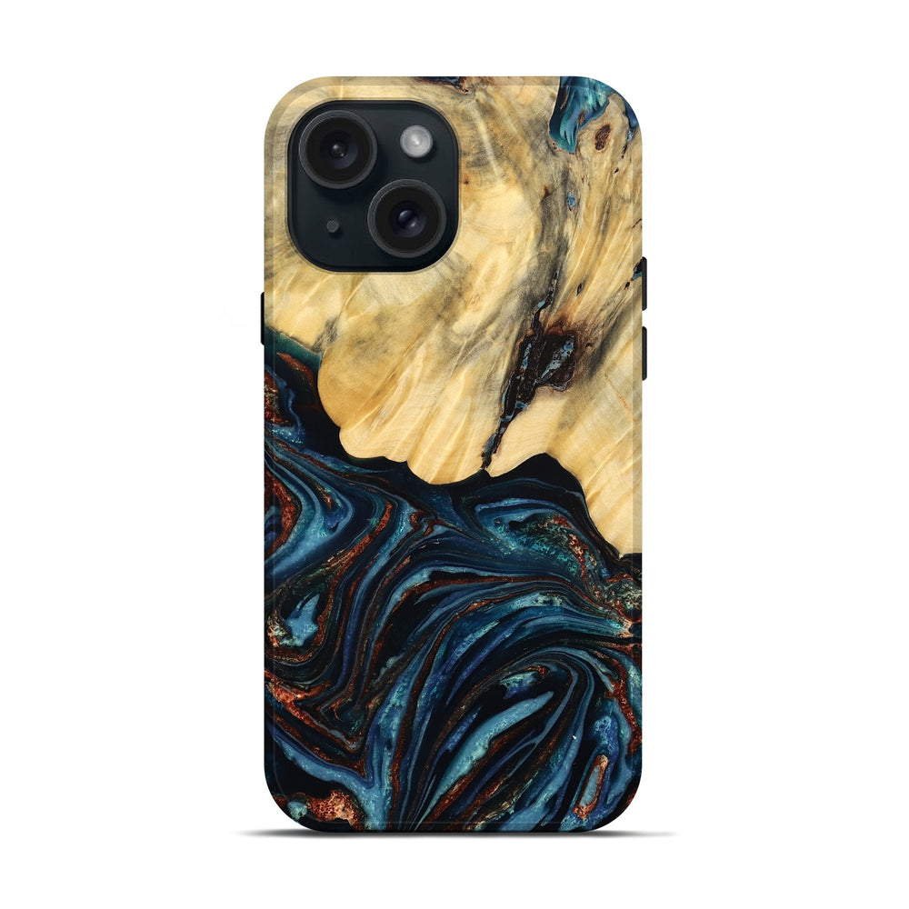 Our Live Edge cases are made from an amazing combination of stabilized wood burl and colored resin. Our stabilization process hardens the wood to protect against cracks and breaks. We do every step of the process at our shop in Northern Indiana. Perfectly fits the iPhone 15.