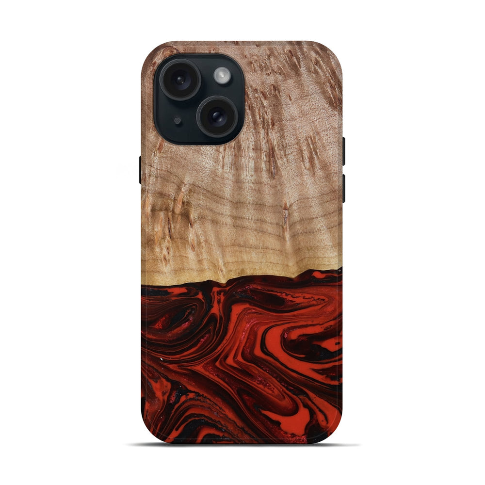 Our Live Edge cases are made from an amazing combination of stabilized wood burl and colored resin. Our stabilization process hardens the wood to protect against cracks and breaks. We do every step of the process at our shop in Northern Indiana. Perfectly fits the iPhone 15.