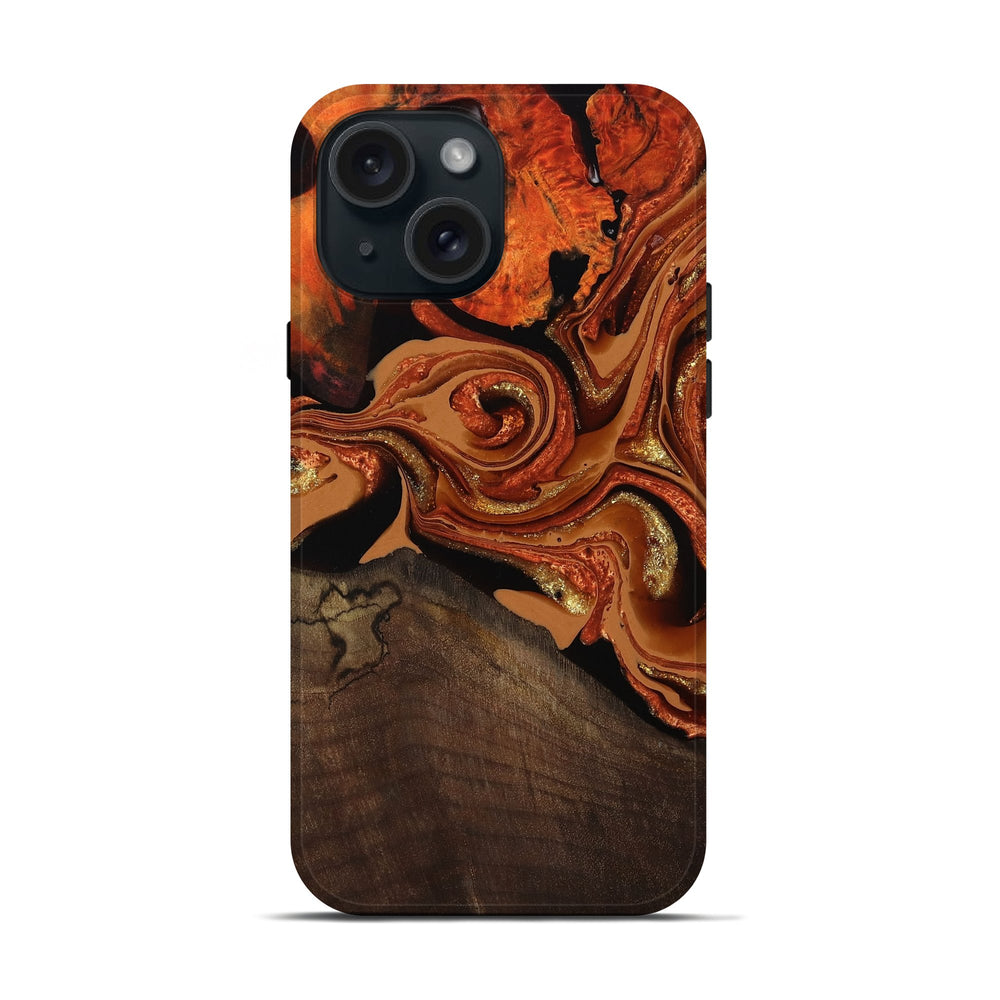 Our Live Edge cases are made from an amazing combination of stabilized wood burl and colored resin. Our stabilization process hardens the wood to protect against cracks and breaks. We do every step of the process at our shop in Northern Indiana. Perfectly fits the iPhone 15.