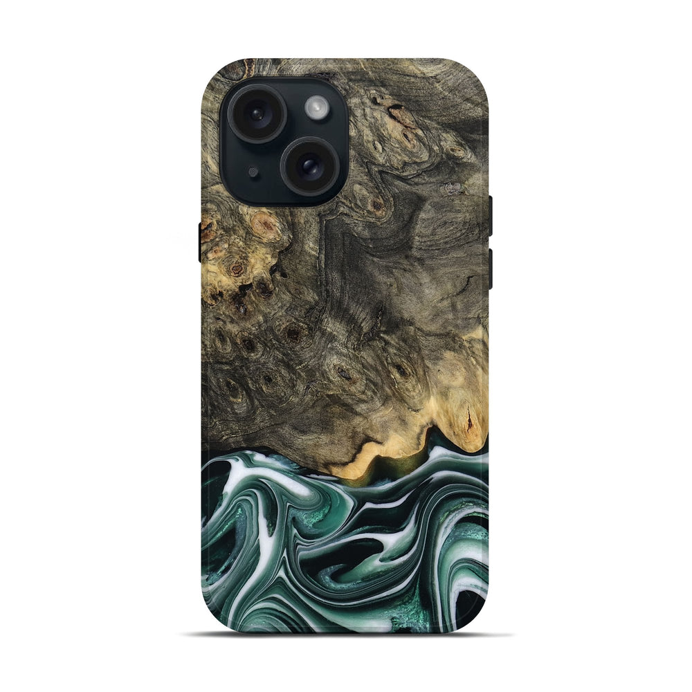 Our Live Edge cases are made from an amazing combination of stabilized wood burl and colored resin. Our stabilization process hardens the wood to protect against cracks and breaks. We do every step of the process at our shop in Northern Indiana. Perfectly fits the iPhone 15.