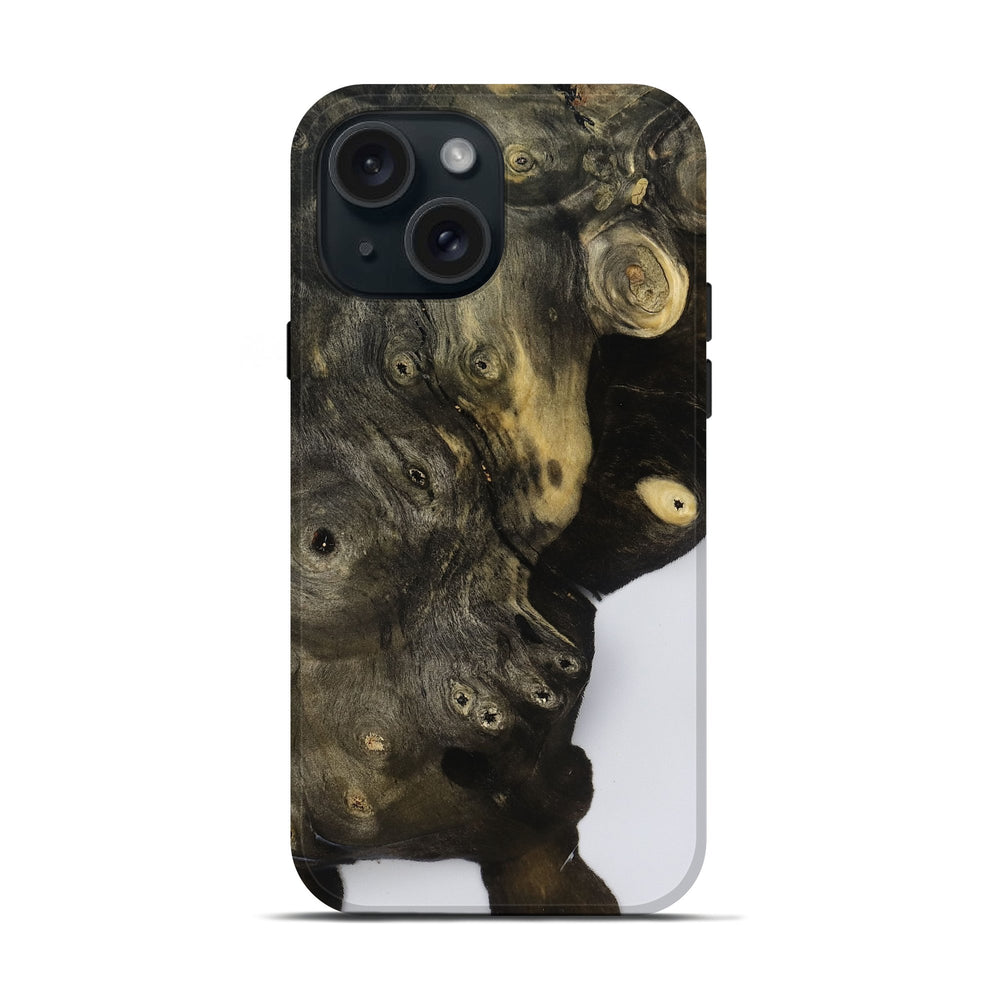 Our Live Edge cases are made from an amazing combination of stabilized wood burl and colored resin. Our stabilization process hardens the wood to protect against cracks and breaks. We do every step of the process at our shop in Northern Indiana. Perfectly fits the iPhone 15.