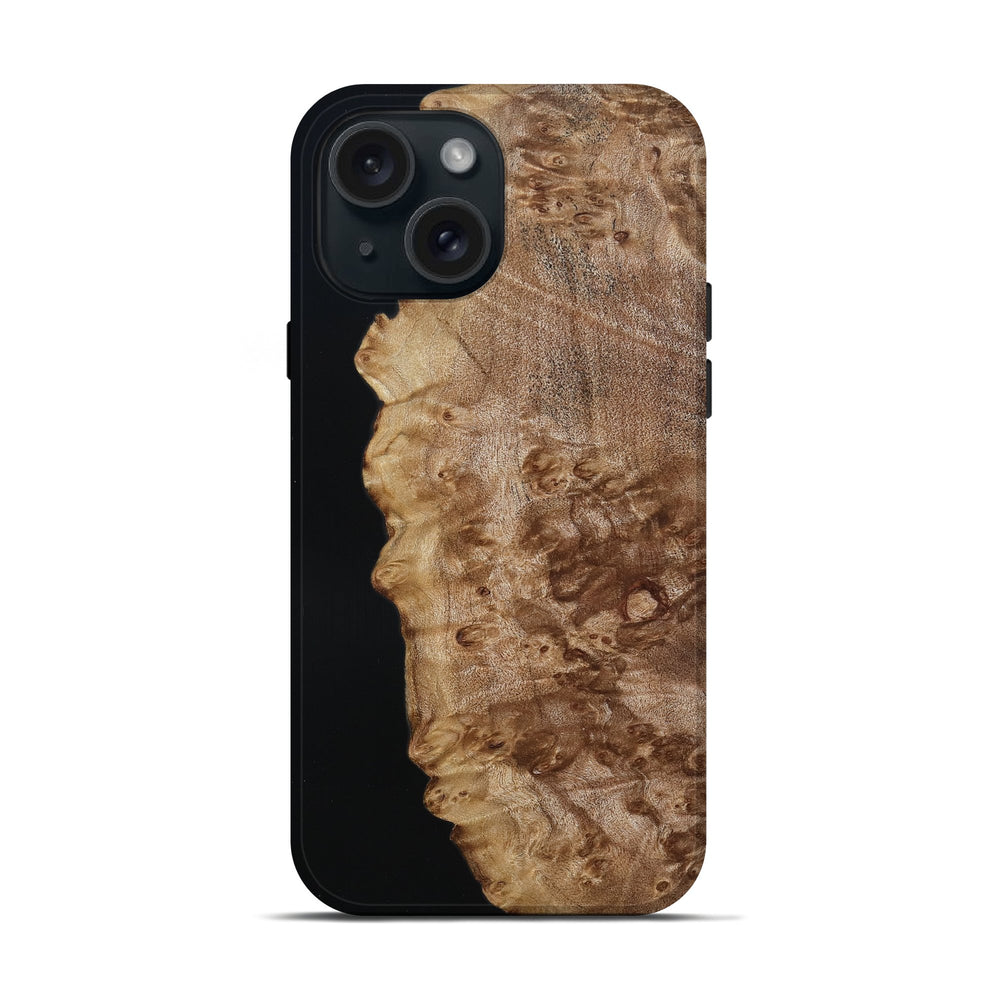 Our Live Edge cases are made from an amazing combination of stabilized wood burl and colored resin. Our stabilization process hardens the wood to protect against cracks and breaks. We do every step of the process at our shop in Northern Indiana. Perfectly fits the iPhone 15.