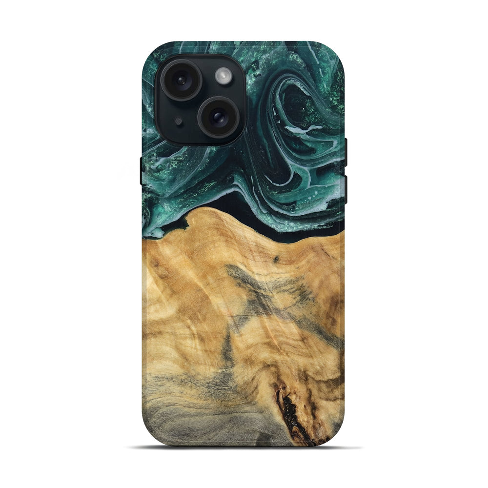 Our Live Edge cases are made from an amazing combination of stabilized wood burl and colored resin. Our stabilization process hardens the wood to protect against cracks and breaks. We do every step of the process at our shop in Northern Indiana. Perfectly fits the iPhone 15.