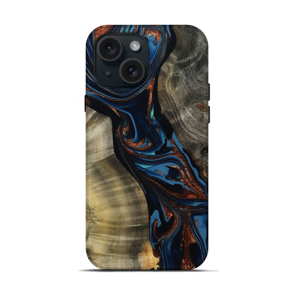 Our Live Edge cases are made from an amazing combination of stabilized wood burl and colored resin. Our stabilization process hardens the wood to protect against cracks and breaks. We do every step of the process at our shop in Northern Indiana. Perfectly fits the iPhone 15.