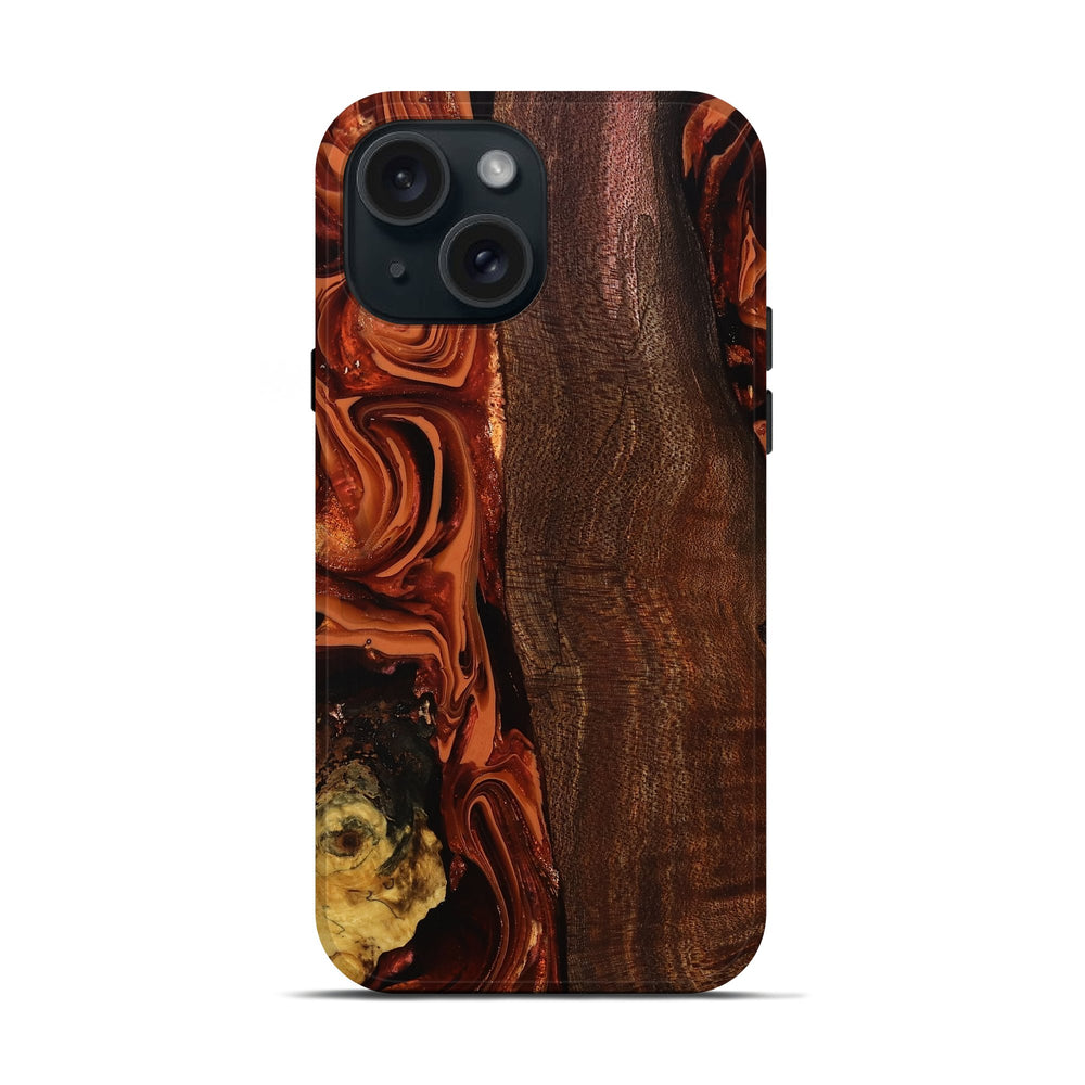 Our Live Edge cases are made from an amazing combination of stabilized wood burl and colored resin. Our stabilization process hardens the wood to protect against cracks and breaks. We do every step of the process at our shop in Northern Indiana. Perfectly fits the iPhone 15.