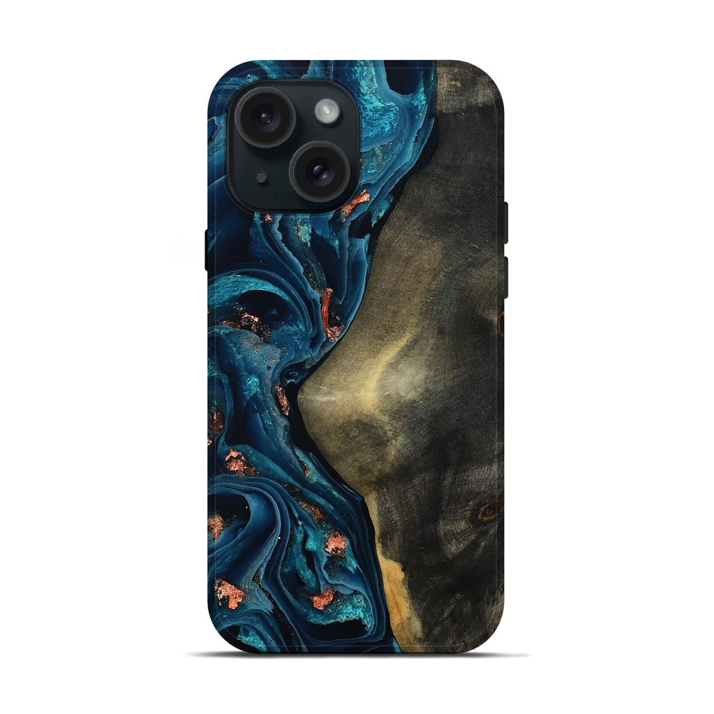 Our Live Edge cases are made from an amazing combination of stabilized wood burl and colored resin. Our stabilization process hardens the wood to protect against cracks and breaks. We do every step of the process at our shop in Northern Indiana. Perfectly fits the iPhone 15.