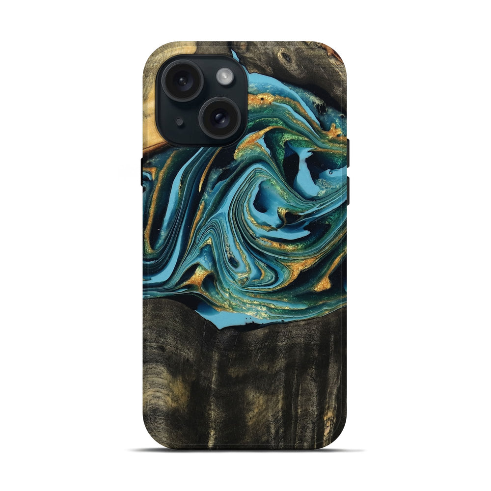 Our Live Edge cases are made from an amazing combination of stabilized wood burl and colored resin. Our stabilization process hardens the wood to protect against cracks and breaks. We do every step of the process at our shop in Northern Indiana. Perfectly fits the iPhone 15.