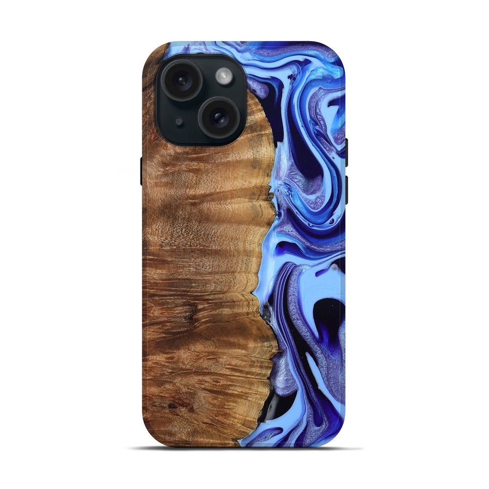 Our Live Edge cases are made from an amazing combination of stabilized wood burl and colored resin. Our stabilization process hardens the wood to protect against cracks and breaks. We do every step of the process at our shop in Northern Indiana. Perfectly fits the iPhone 15.