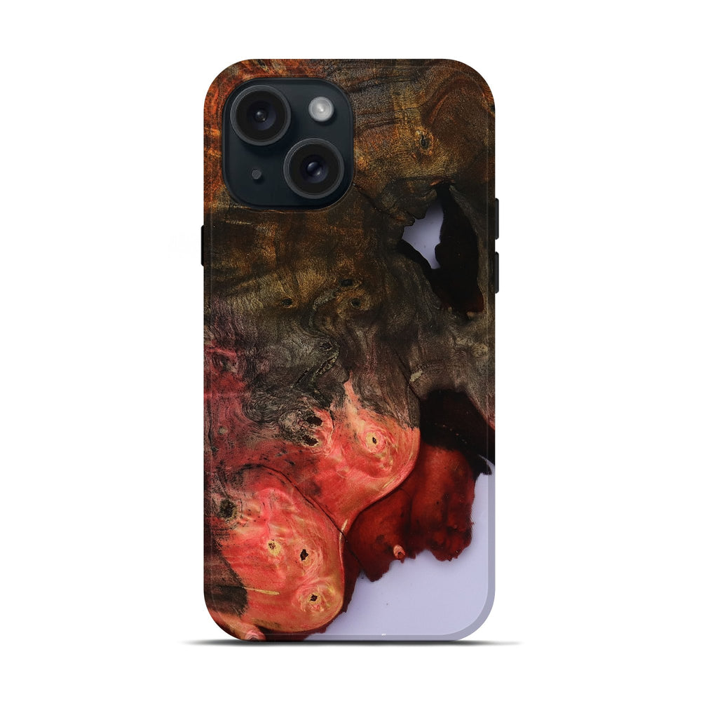 Our Live Edge cases are made from an amazing combination of stabilized wood burl and colored resin. Our stabilization process hardens the wood to protect against cracks and breaks. We do every step of the process at our shop in Northern Indiana. Perfectly fits the iPhone 15.