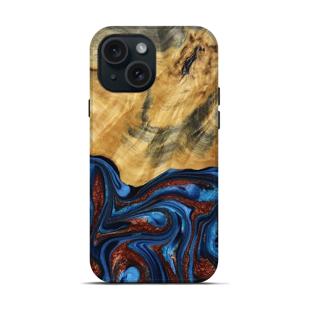Our Live Edge cases are made from an amazing combination of stabilized wood burl and colored resin. Our stabilization process hardens the wood to protect against cracks and breaks. We do every step of the process at our shop in Northern Indiana. Perfectly fits the iPhone 15.