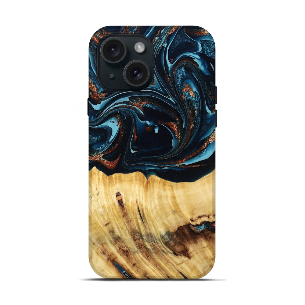 Our Live Edge cases are made from an amazing combination of stabilized wood burl and colored resin. Our stabilization process hardens the wood to protect against cracks and breaks. We do every step of the process at our shop in Northern Indiana. Perfectly fits the iPhone 15.