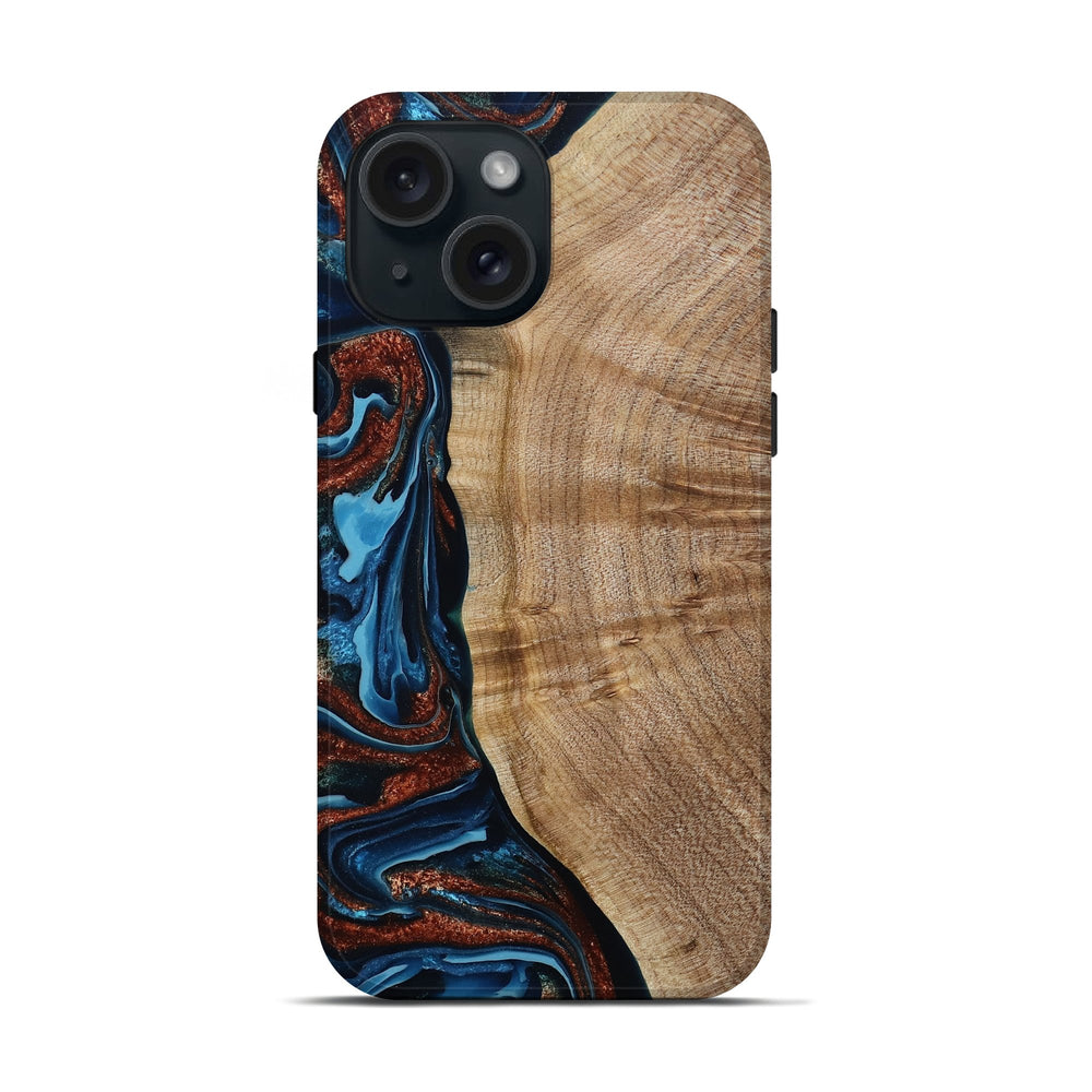 Our Live Edge cases are made from an amazing combination of stabilized wood burl and colored resin. Our stabilization process hardens the wood to protect against cracks and breaks. We do every step of the process at our shop in Northern Indiana. Perfectly fits the iPhone 15.