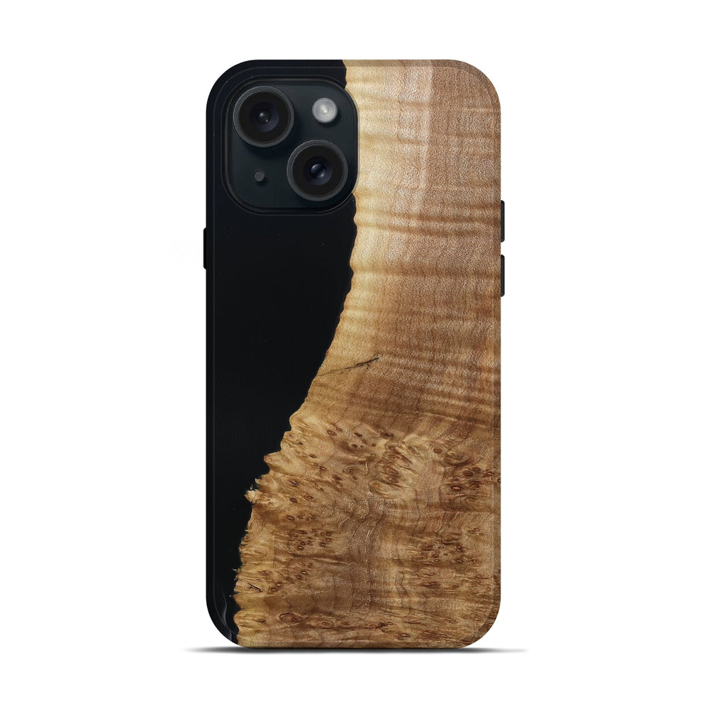 Our Live Edge cases are made from an amazing combination of stabilized wood burl and colored resin. Our stabilization process hardens the wood to protect against cracks and breaks. We do every step of the process at our shop in Northern Indiana. Perfectly fits the iPhone 15.