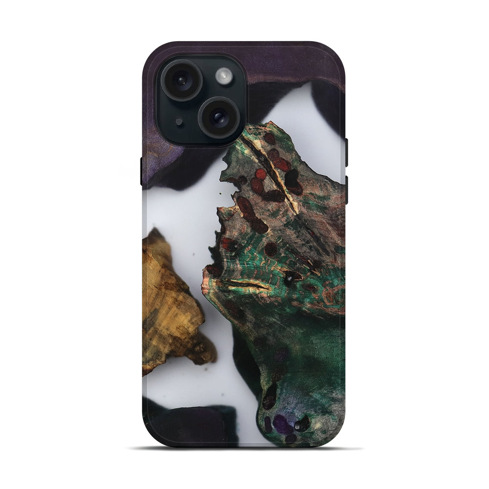 Our Live Edge cases are made from an amazing combination of stabilized wood burl and colored resin. Our stabilization process hardens the wood to protect against cracks and breaks. We do every step of the process at our shop in Northern Indiana. Perfectly fits the iPhone 15.