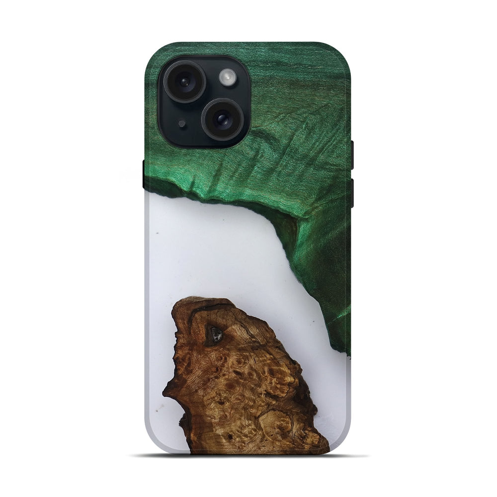 Our Live Edge cases are made from an amazing combination of stabilized wood burl and colored resin. Our stabilization process hardens the wood to protect against cracks and breaks. We do every step of the process at our shop in Northern Indiana. Perfectly fits the iPhone 15.