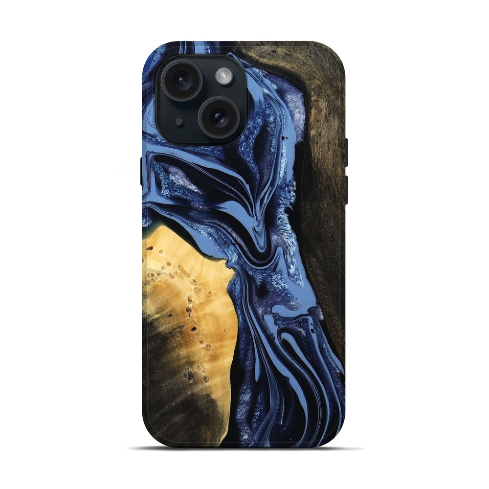 Our Live Edge cases are made from an amazing combination of stabilized wood burl and colored resin. Our stabilization process hardens the wood to protect against cracks and breaks. We do every step of the process at our shop in Northern Indiana. Perfectly fits the iPhone 15.