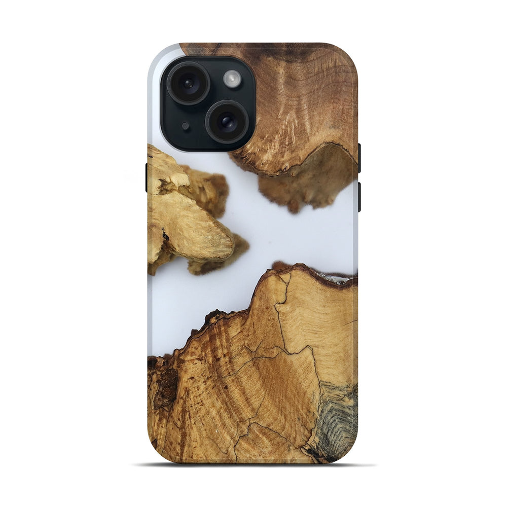 Our Live Edge cases are made from an amazing combination of stabilized wood burl and colored resin. Our stabilization process hardens the wood to protect against cracks and breaks. We do every step of the process at our shop in Northern Indiana. Perfectly fits the iPhone 15.