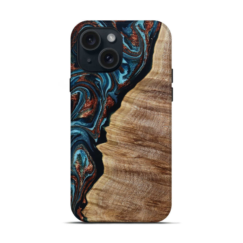 Our Live Edge cases are made from an amazing combination of stabilized wood burl and colored resin. Our stabilization process hardens the wood to protect against cracks and breaks. We do every step of the process at our shop in Northern Indiana. Perfectly fits the iPhone 15.