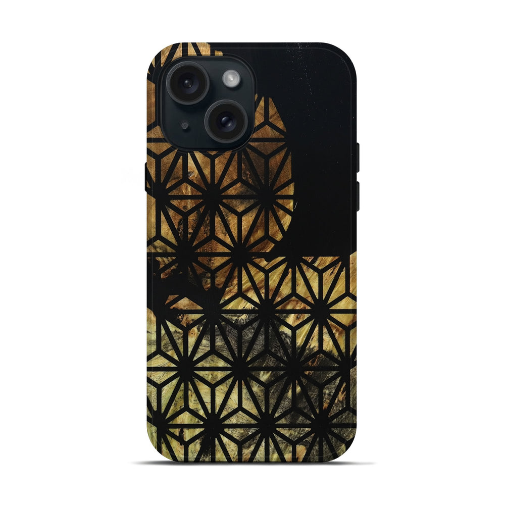 Our Live Edge cases are made from an amazing combination of stabilized wood burl and colored resin. Our stabilization process hardens the wood to protect against cracks and breaks. We do every step of the process at our shop in Northern Indiana. Perfectly fits the iPhone 15.