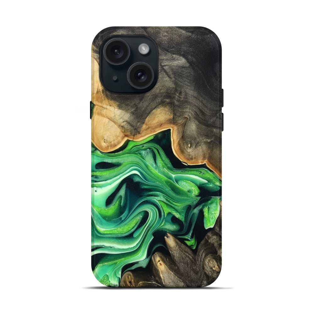 Our Live Edge cases are made from an amazing combination of stabilized wood burl and colored resin. Our stabilization process hardens the wood to protect against cracks and breaks. We do every step of the process at our shop in Northern Indiana. Perfectly fits the iPhone 15.