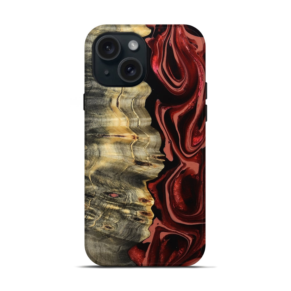 Our Live Edge cases are made from an amazing combination of stabilized wood burl and colored resin. Our stabilization process hardens the wood to protect against cracks and breaks. We do every step of the process at our shop in Northern Indiana. Perfectly fits the iPhone 15.