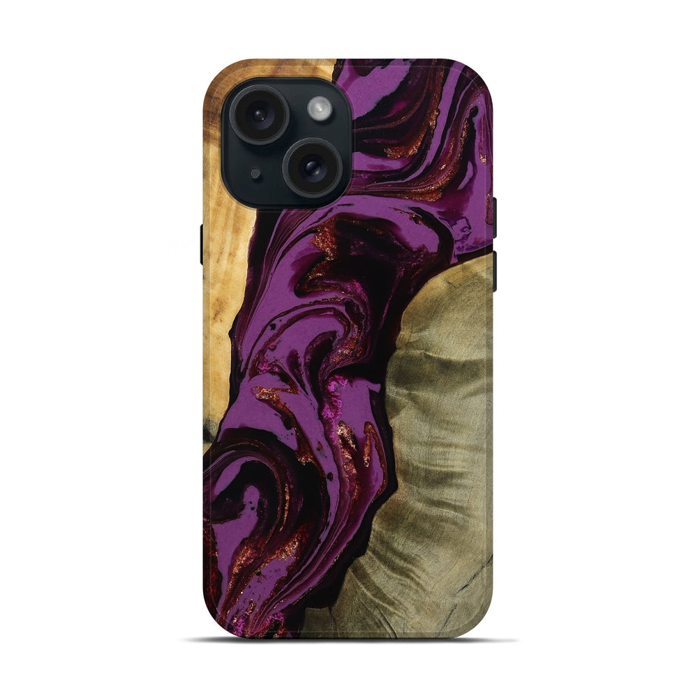 Our Live Edge cases are made from an amazing combination of stabilized wood burl and colored resin. Our stabilization process hardens the wood to protect against cracks and breaks. We do every step of the process at our shop in Northern Indiana. Perfectly fits the iPhone 15.