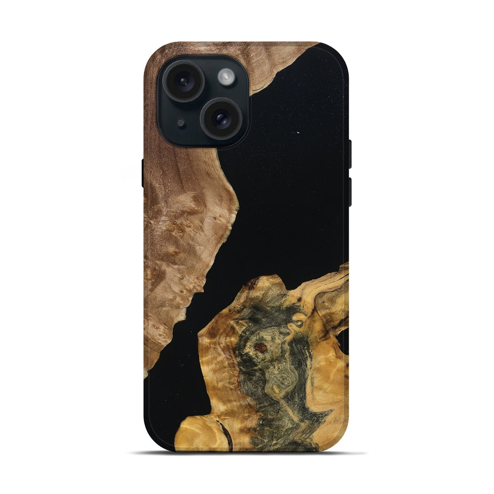 Our Live Edge cases are made from an amazing combination of stabilized wood burl and colored resin. Our stabilization process hardens the wood to protect against cracks and breaks. We do every step of the process at our shop in Northern Indiana. Perfectly fits the iPhone 15.