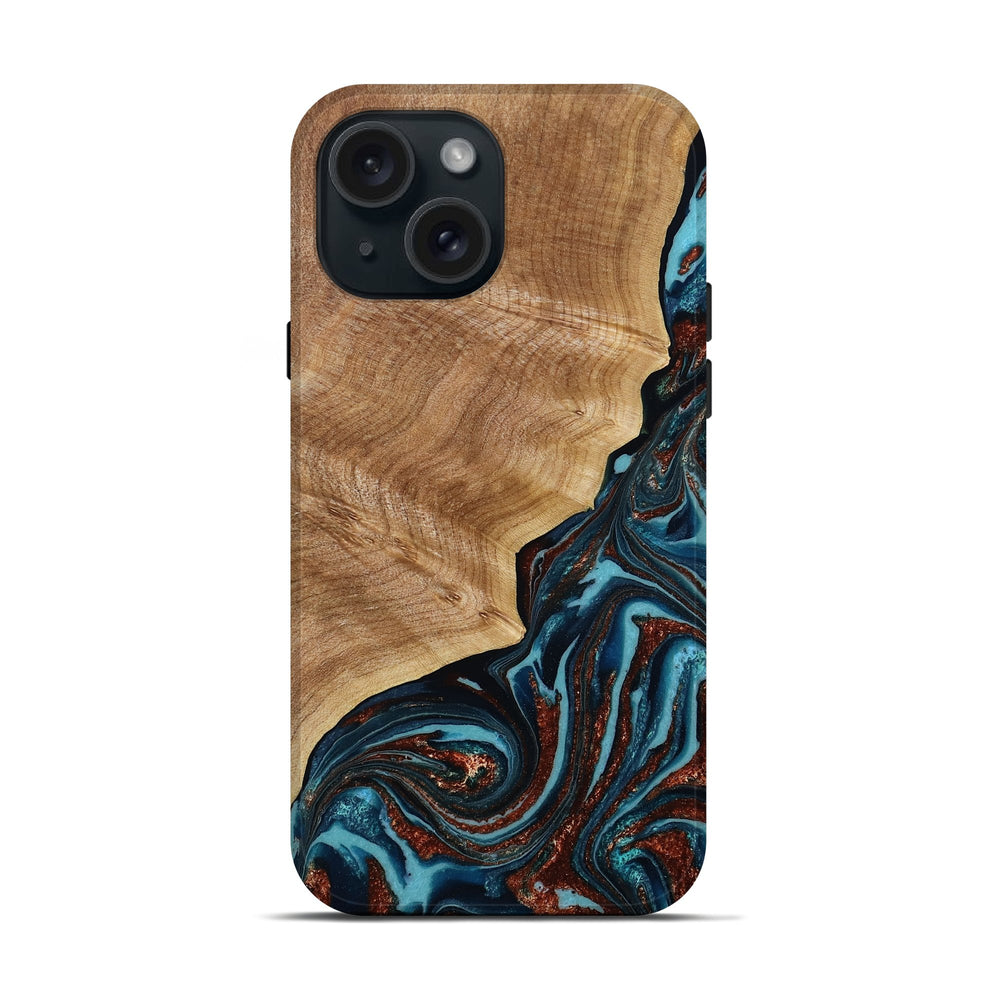 Our Live Edge cases are made from an amazing combination of stabilized wood burl and colored resin. Our stabilization process hardens the wood to protect against cracks and breaks. We do every step of the process at our shop in Northern Indiana. Perfectly fits the iPhone 15.