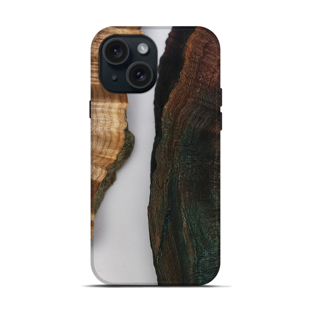 Our Live Edge cases are made from an amazing combination of stabilized wood burl and colored resin. Our stabilization process hardens the wood to protect against cracks and breaks. We do every step of the process at our shop in Northern Indiana. Perfectly fits the iPhone 15.
