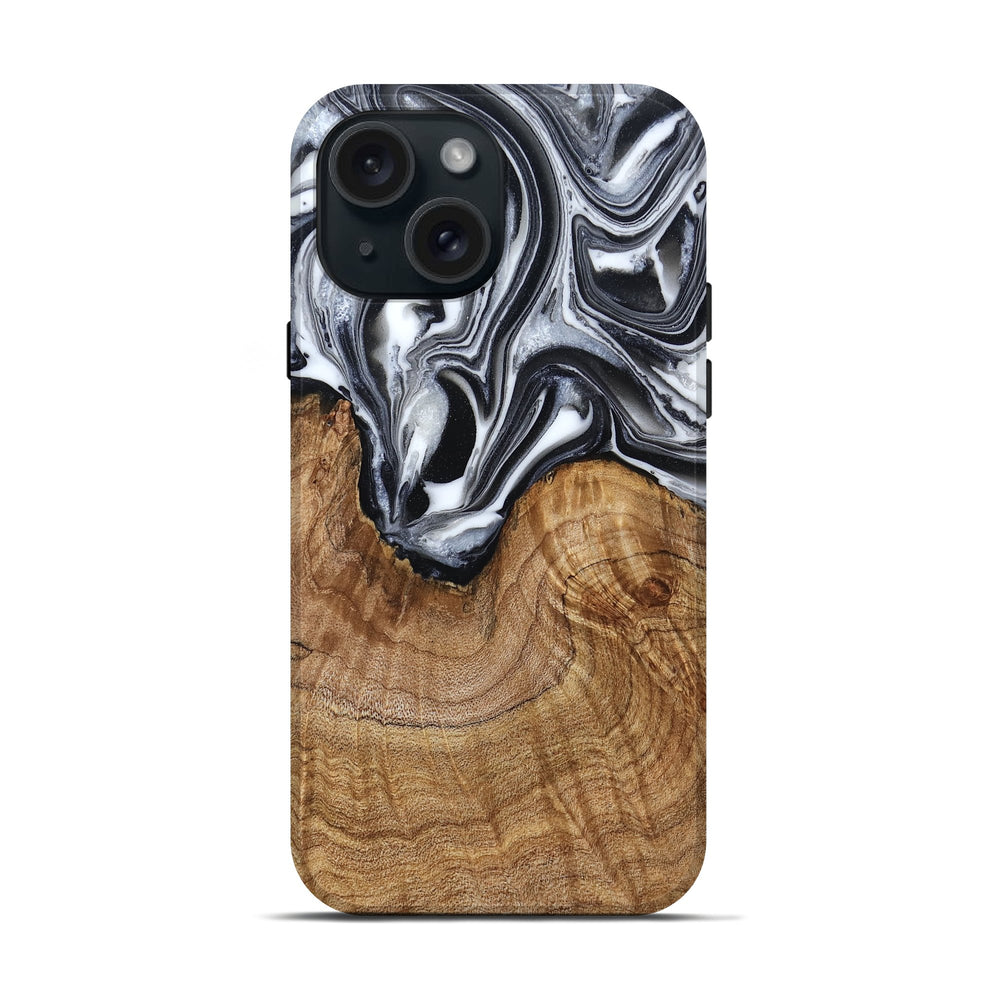 Our Live Edge cases are made from an amazing combination of stabilized wood burl and colored resin. Our stabilization process hardens the wood to protect against cracks and breaks. We do every step of the process at our shop in Northern Indiana. Perfectly fits the iPhone 15.