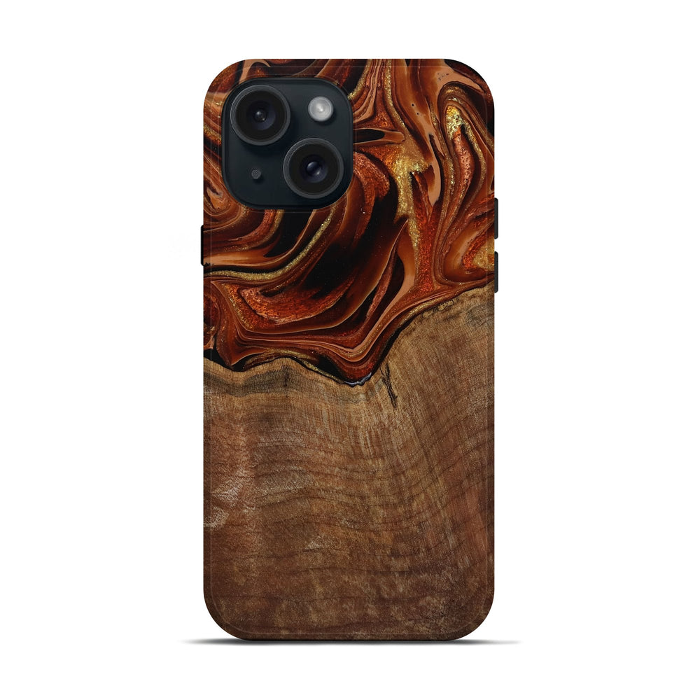 Our Live Edge cases are made from an amazing combination of stabilized wood burl and colored resin. Our stabilization process hardens the wood to protect against cracks and breaks. We do every step of the process at our shop in Northern Indiana. Perfectly fits the iPhone 15.