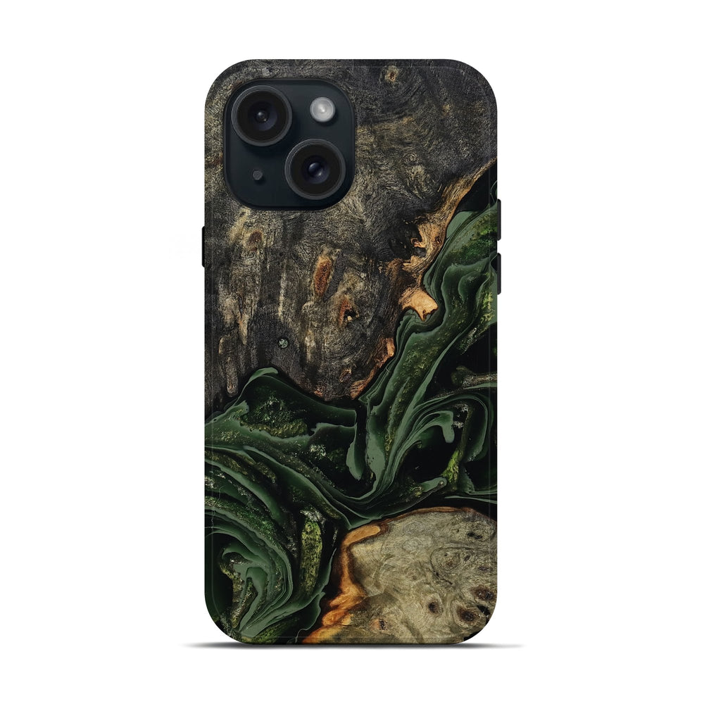 Our Live Edge cases are made from an amazing combination of stabilized wood burl and colored resin. Our stabilization process hardens the wood to protect against cracks and breaks. We do every step of the process at our shop in Northern Indiana. Perfectly fits the iPhone 15.