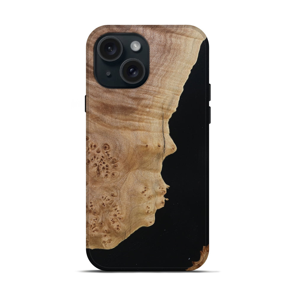 Our Live Edge cases are made from an amazing combination of stabilized wood burl and colored resin. Our stabilization process hardens the wood to protect against cracks and breaks. We do every step of the process at our shop in Northern Indiana. Perfectly fits the iPhone 15.