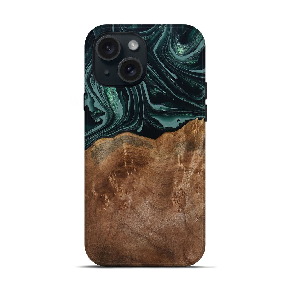 Our Live Edge cases are made from an amazing combination of stabilized wood burl and colored resin. Our stabilization process hardens the wood to protect against cracks and breaks. We do every step of the process at our shop in Northern Indiana. Perfectly fits the iPhone 15.